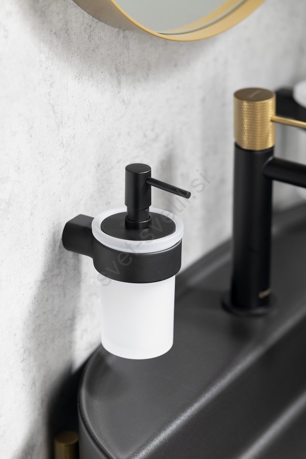 Gedy - Stenski dozirnik mila PIRENEI 110 ml mlečno steklo/mat črna