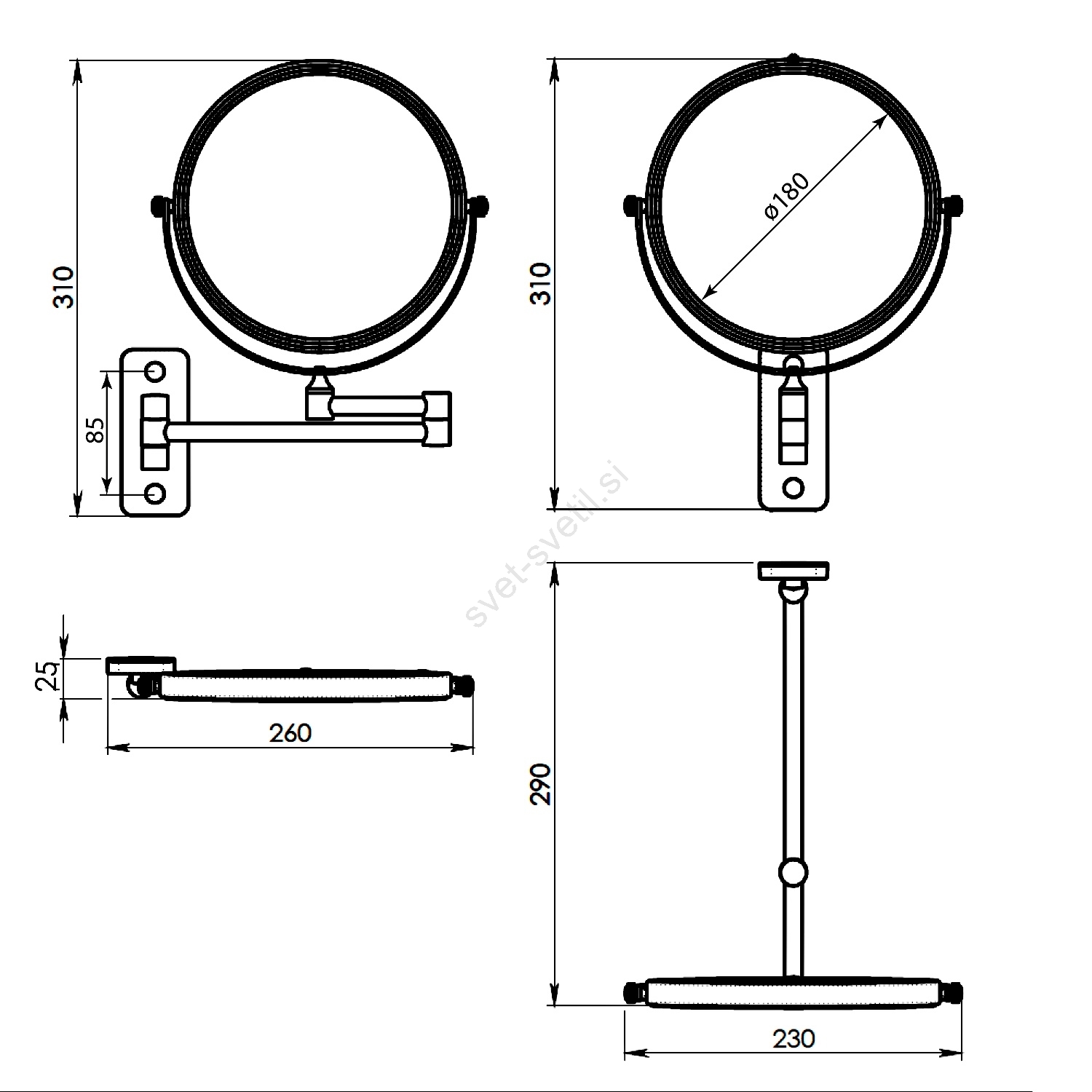 • Konstrukcija z gibljivim krakom omogoča enostavno nastavljanje in obračanje ogledala po potrebi.