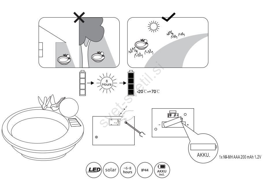 Globo - LED Solarna svetilka LED/0,06W/3V IP44 ptičja kopel