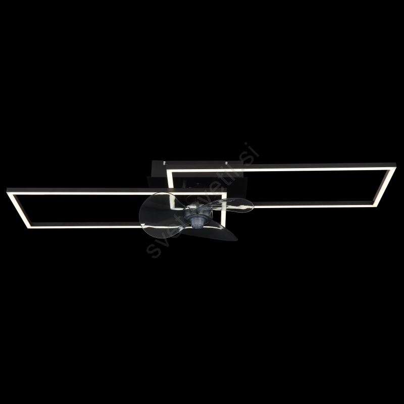 • Dizajnerski stropni ventilator v matni črni barvi z opalnimi elementi.