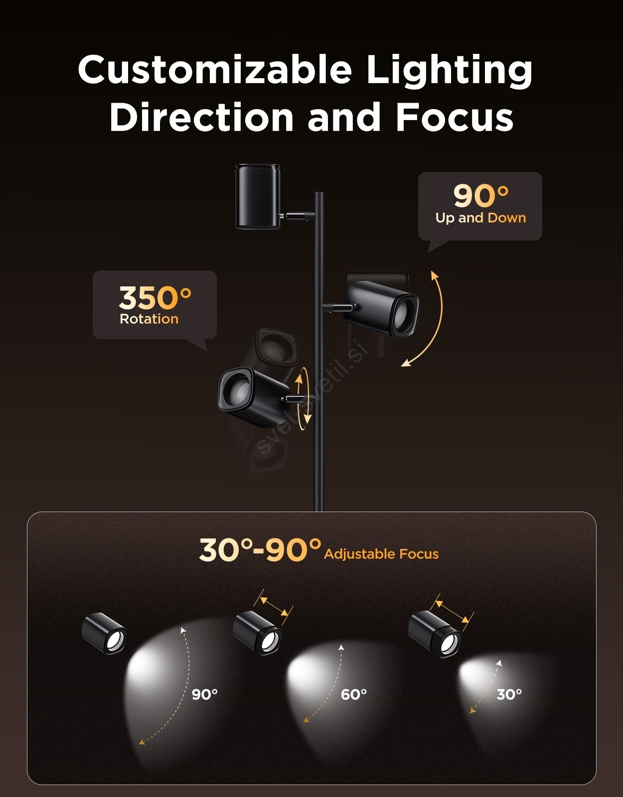 • Kraki se obračajo: horizontalno do 350°, vertikalno do 90°, glave svetilk se lahko nagibajo od 30° do 90°.
