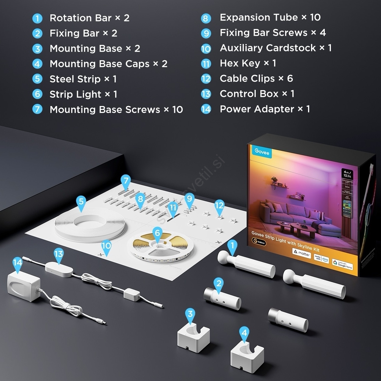 Govee - LED RGBICWW viseči LED trak 36W/24V, 4 m, Skyline Matter, Wi-Fi