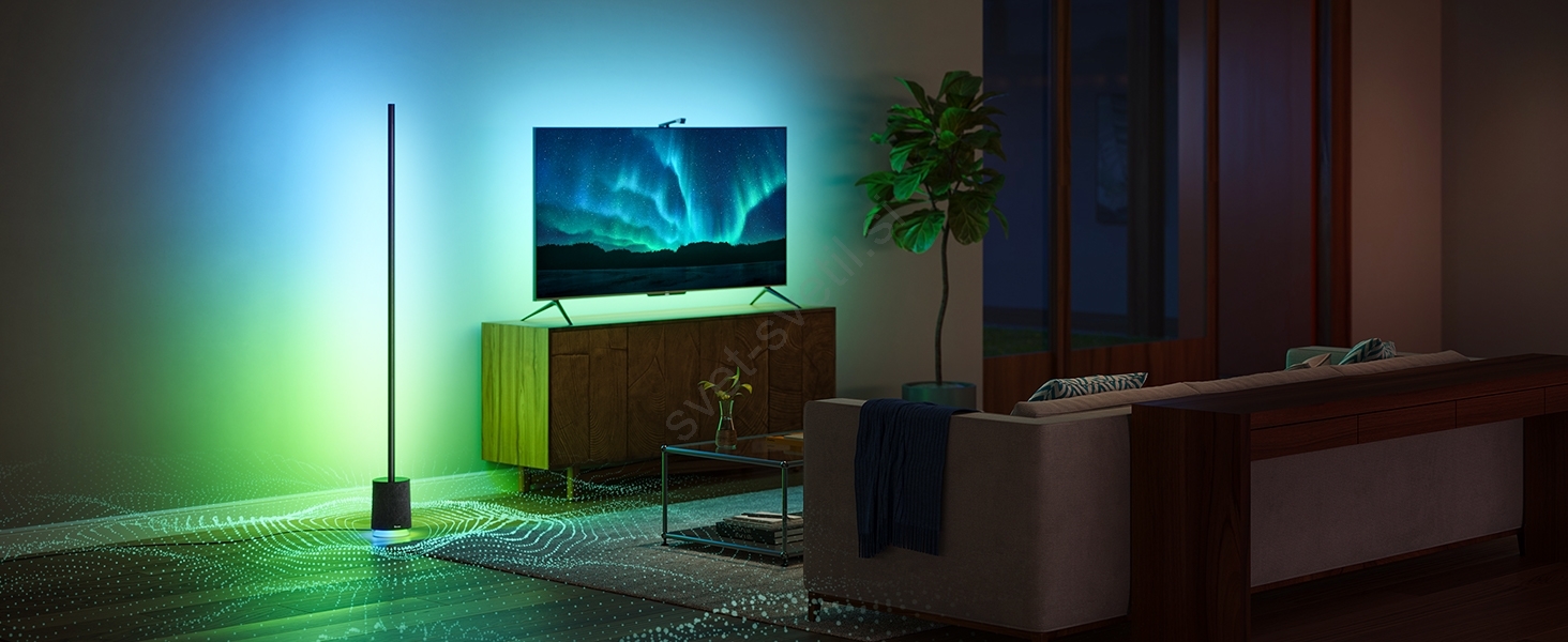 • Minimalistična talna svetilka z BT zvočnikom, ki zagotavlja popolno vizualno doživetje in vrhunsko zvočno izkušnjo.