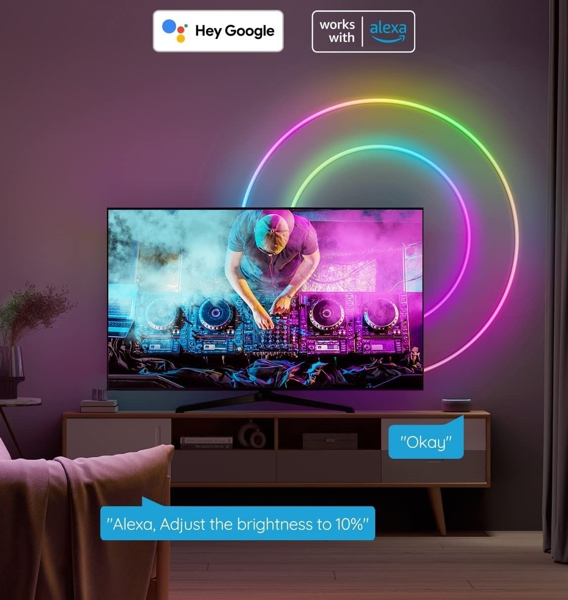 • Izboljšajte svoje igralne, filmske in glasbene izkušnje z oblikovno prilagodljivo svetilko Govee Neon Smart.