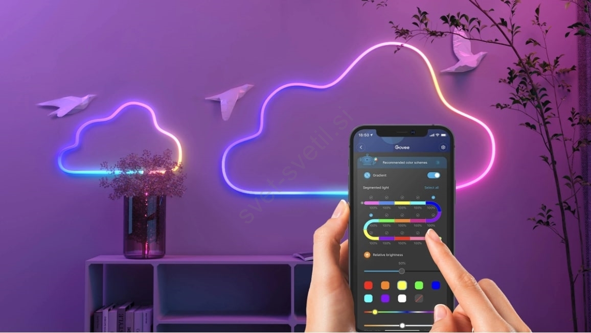 • Tehnologija RGBIC omogoča prikaz do 57 barv hkrati in nastavitev intenzivnosti svetlobe od 1 do 100 %.