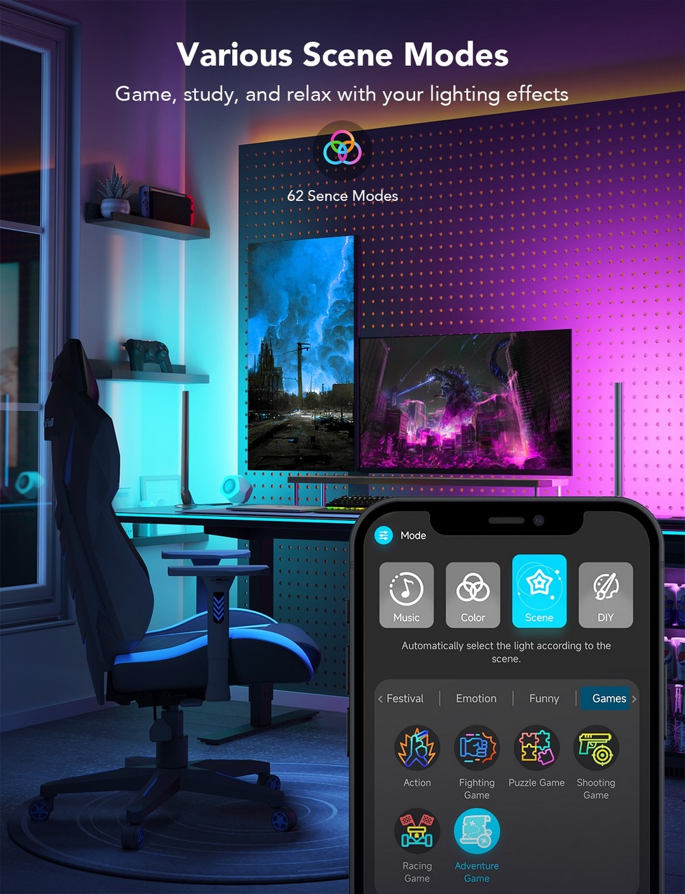 Govee - Pametni igralniški Wi‑Fi LED paneli + pametni dvojni krmilnik, v beli barvi (Wi‑Fi)