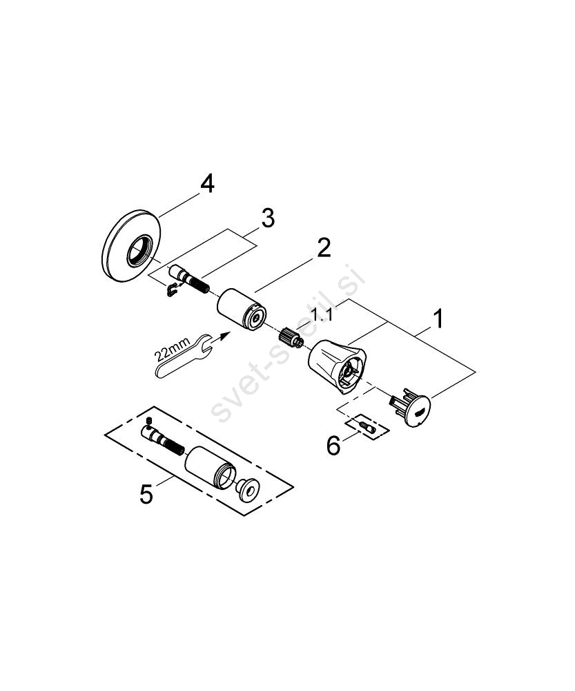 • Zgornji del za podometne ventile GROHE v velikostih 1/2", 3/4" in 1".