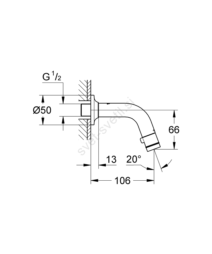 • Dolžina iztoka 106 mm za optimalen doseg vode.