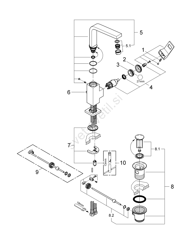 • Montaža na eno odprtino, primerna za večino standardnih umivalnikov.