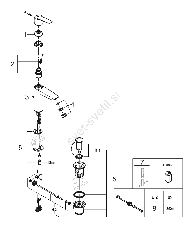• Višina armature: 192 mm; višina izliva: 121 mm; dolžina izliva: 121 mm.