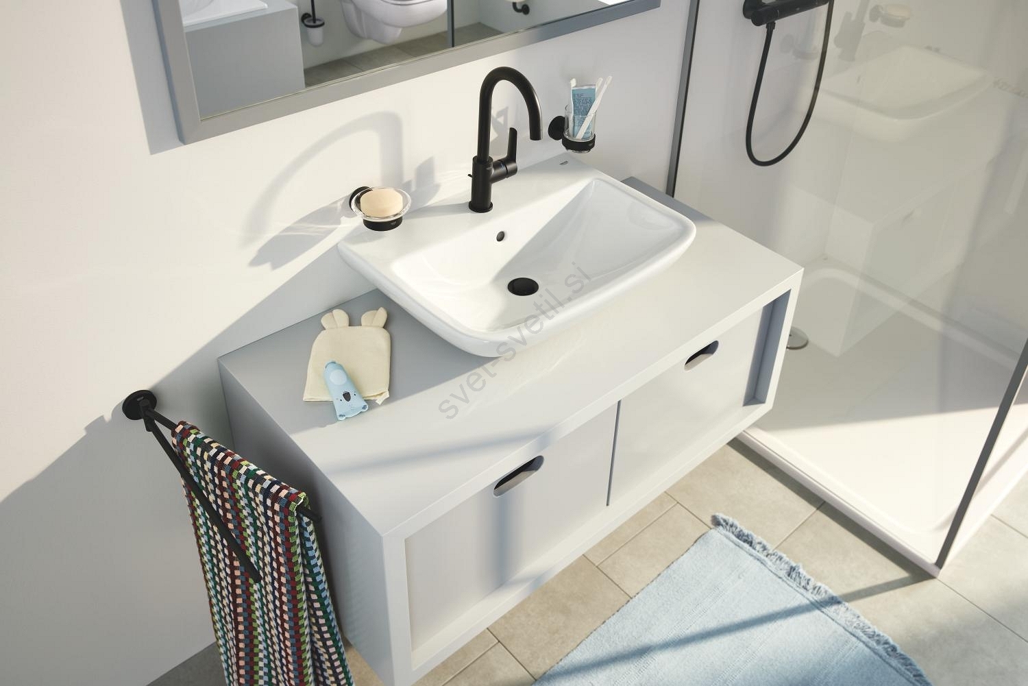 • Mat črna površinska obdelava daje armaturi moden in eleganten videz.