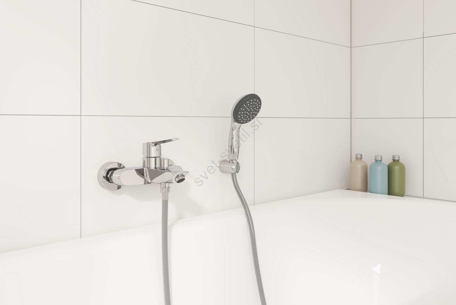• Stenska enoročna kopalna armatura z modernim dizajnom.
