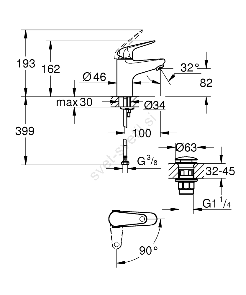 • Višina armature 162 mm in dolžina iztoka 100 mm za optimalno udobje.