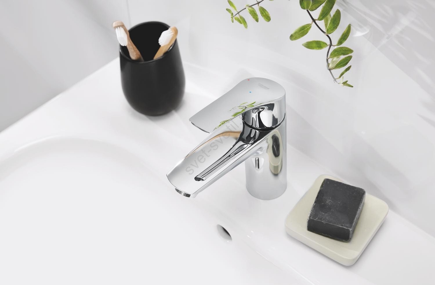 • Sodobna enoročna umivalniška armatura velikosti S za eleganten videz kopalnice.