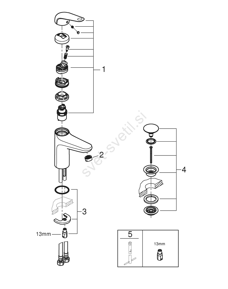 • V kompletu je orodje GROHE QuickTool za hitro in enostavno montažo.