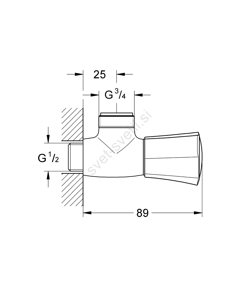 • Priključek za tuš 3/4" za združljivost z običajnimi tuš cevmi.