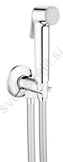 • V kompletu je samozapiralni kotni ventil z vgrajenim nosilcem prhe.