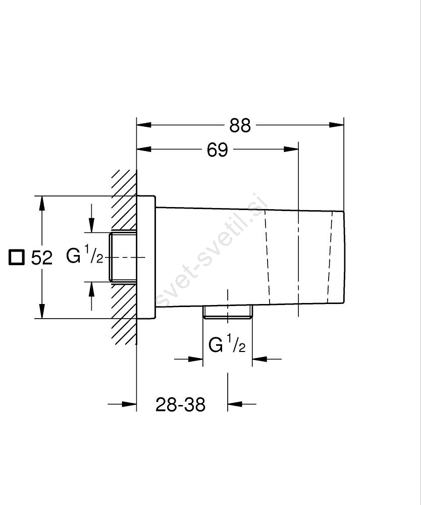 • Stensko koleno z integriranim držalom za tuš zagotavlja elegantno in funkcionalno rešitev.