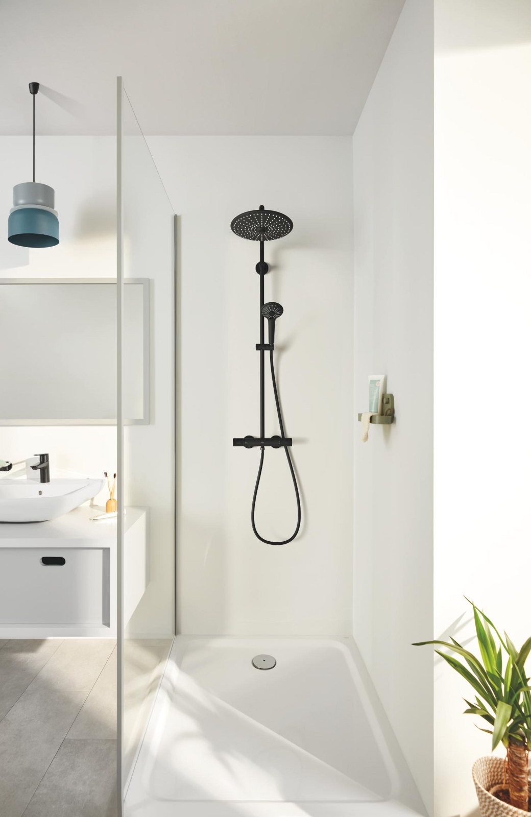 • Eleganten tuš sistem v mat črni barvi Phantom Black za sodoben videz kopalnice.