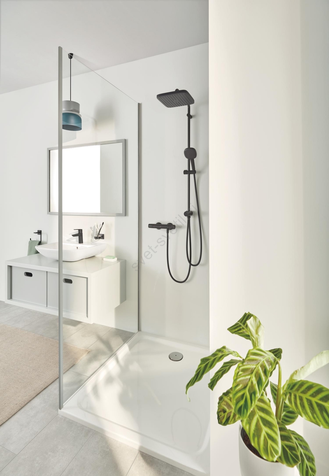 • Eleganten matno črn tušni sistem za sodobne kopalnice.