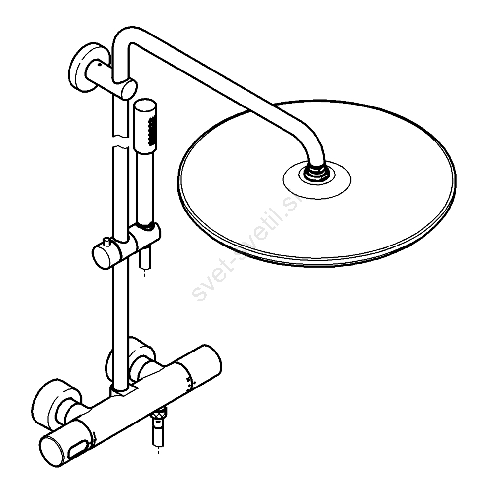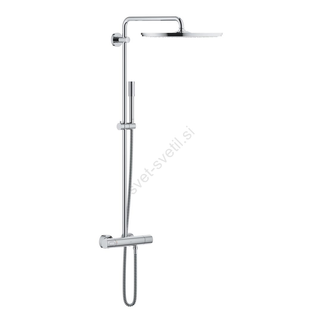 • Stenska termostatska armatura z funkcijo Aquadimmer omogoča enostavno preklapljanje med glavno in ročno prho. ([pro.grohe.com](https://pro.grohe.com/en_pj/rainshower-system-shower-system-with-thermostat-for-wall-mounting-27174001.html?utm_source=openai))