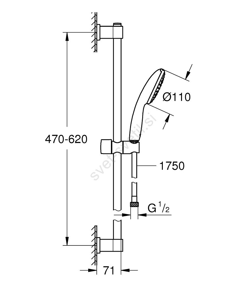 • Nastavljiv drsni nosilec omogoča udobno nastavljanje višine prhe.