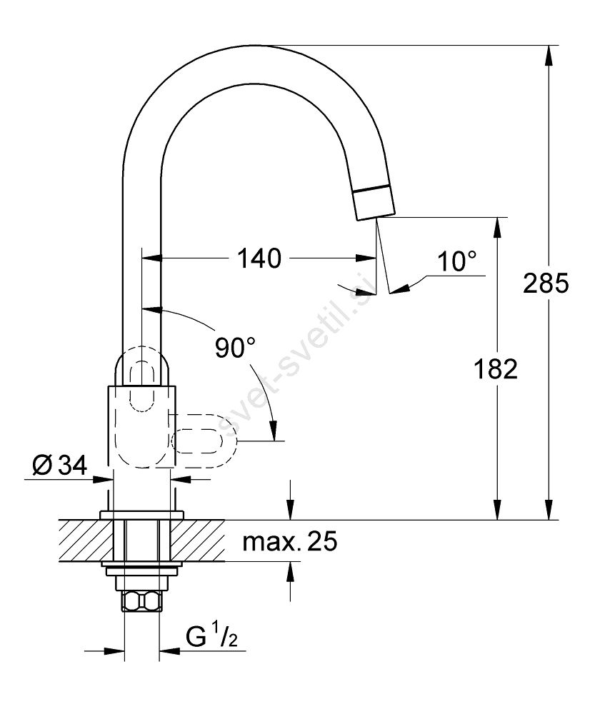 • Višina armature: 28,5 cm.