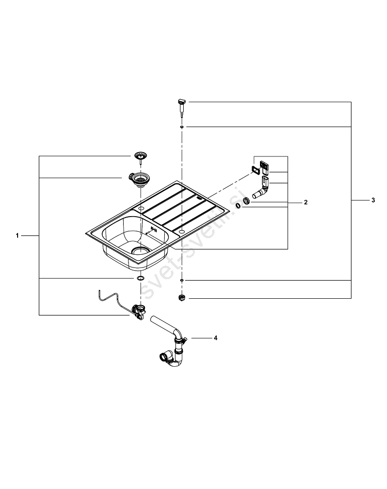 • V paketu je samodejni odtočni zamašek z vrtljivo ročico, komplet za odtok, cedilo za ostanke in montažni komplet.