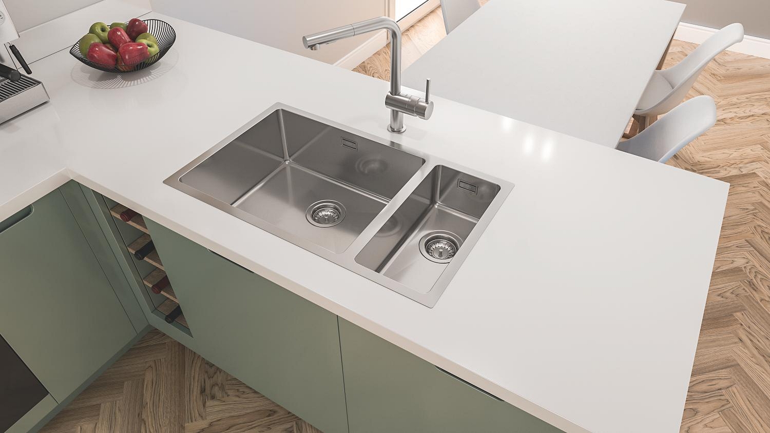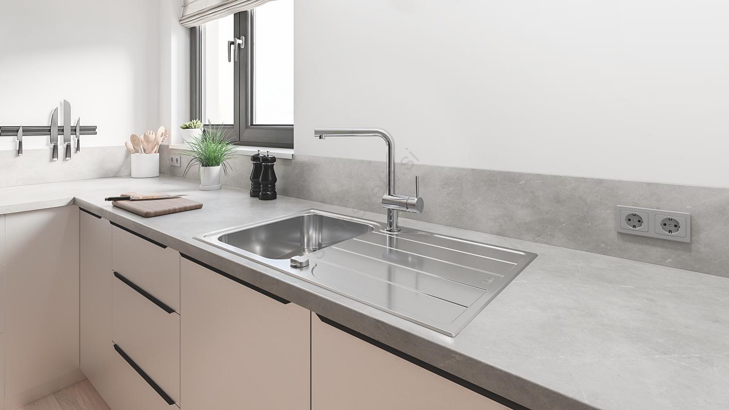 • Komplet kuhinjskega korita in armature GROHE Minta za celovito rešitev vaše kuhinje.