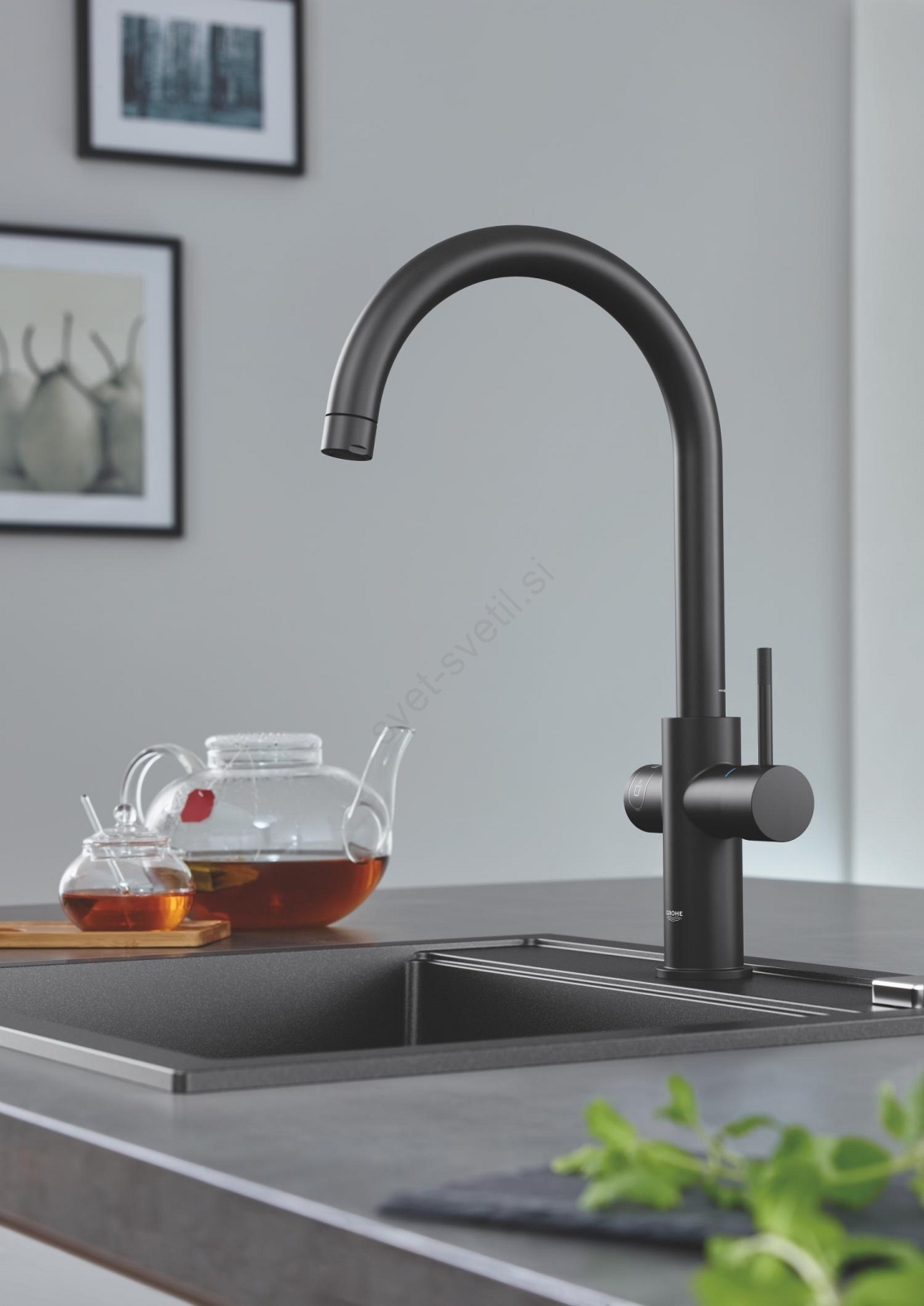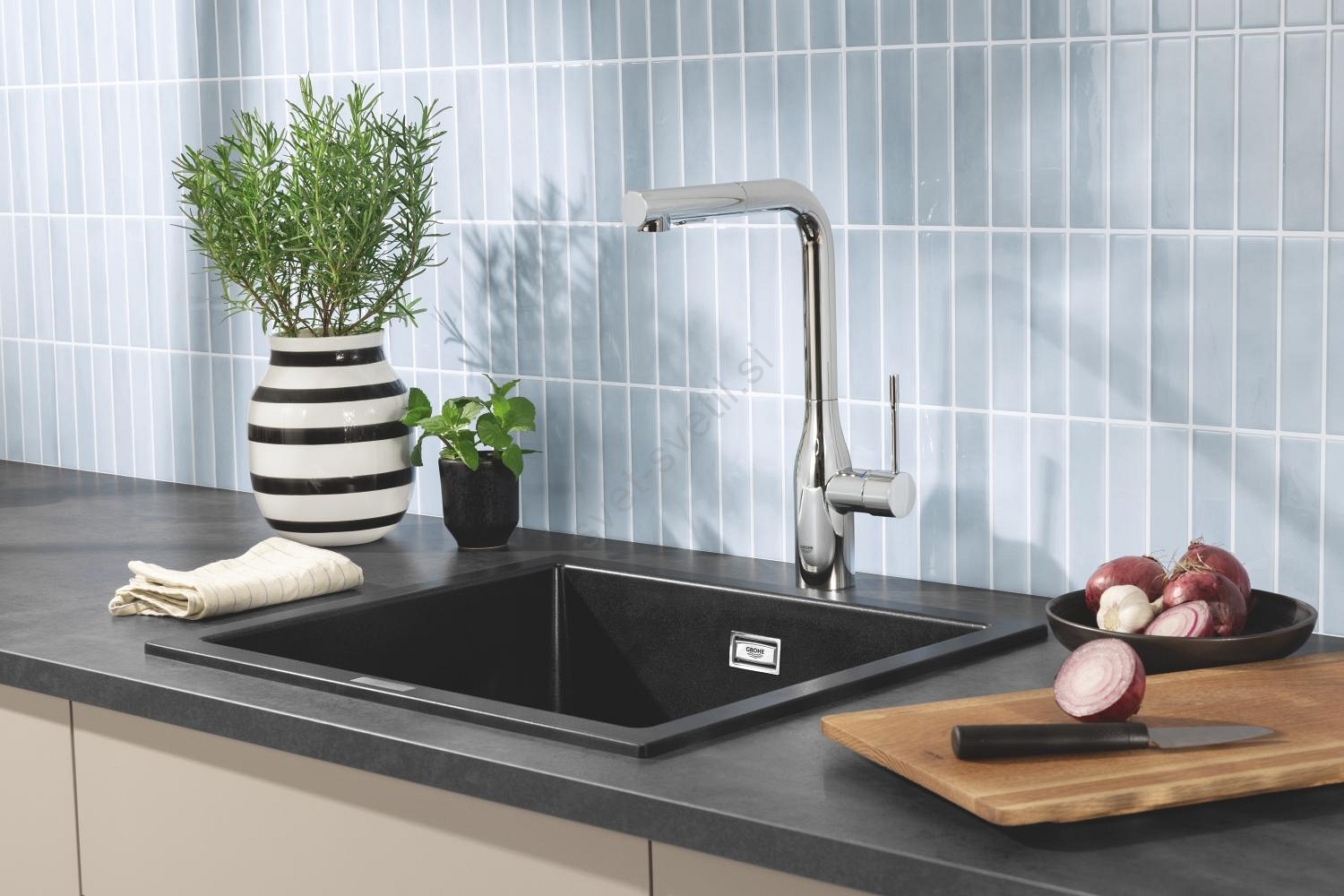 • Kompozitno pomivalno korito GROHE K700 v elegantni izvedbi Granite Black.