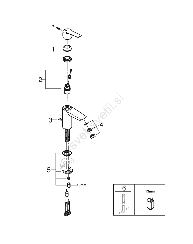 • Enoročna umivalniška armatura za montažo v eno odprtino – enostavna namestitev.