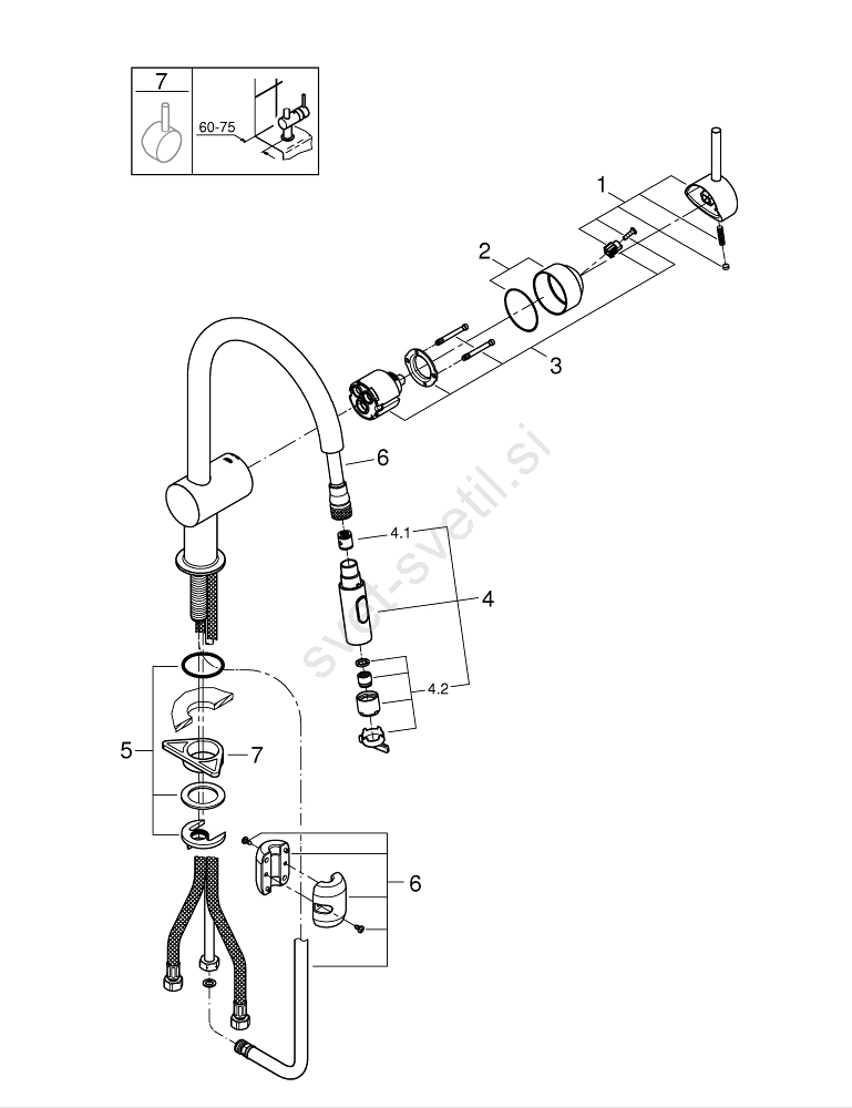 • Sistem GROHE EasyDock zagotavlja enostavno vračanje šobe nazaj na mesto.