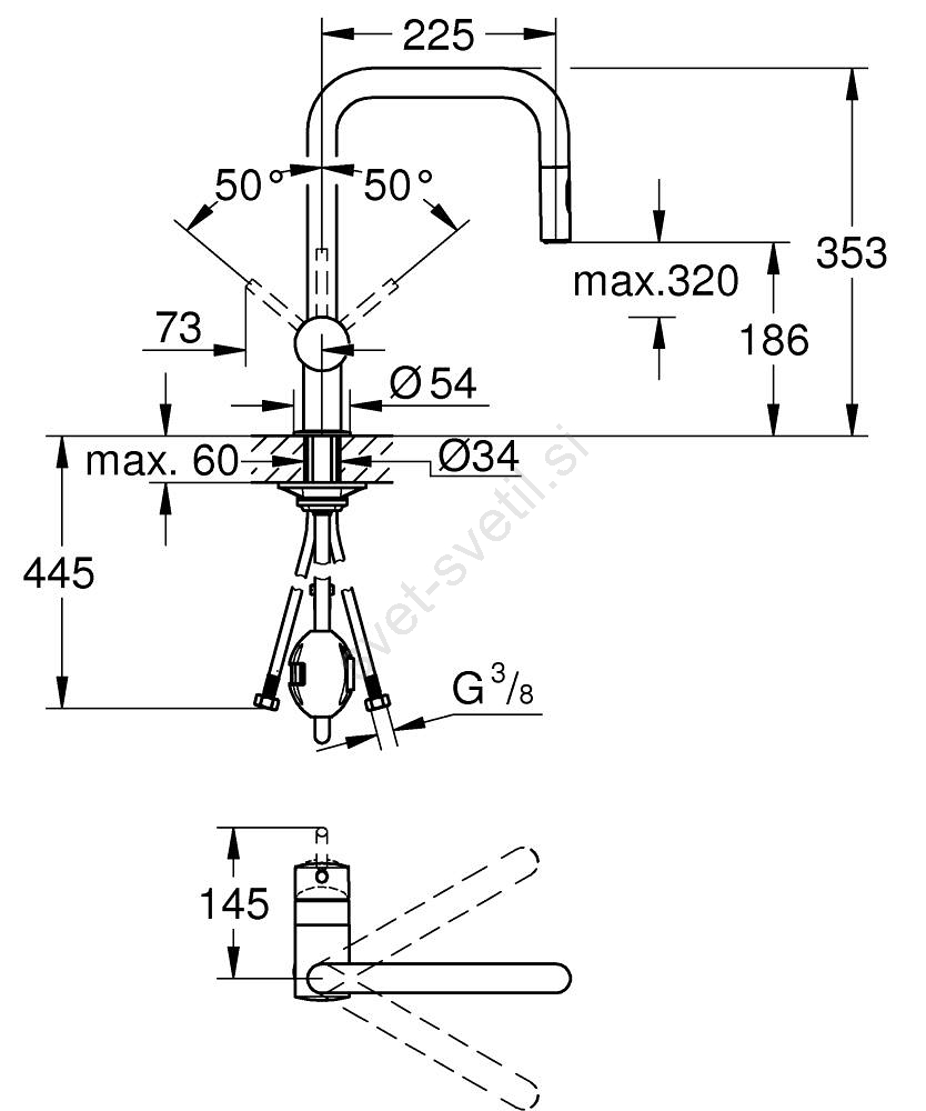 • Montaža z eno luknjo za čist in sodoben videz kuhinje.