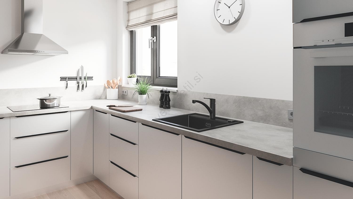 • Elegantna mat črna izvedba za sodoben videz kuhinje.