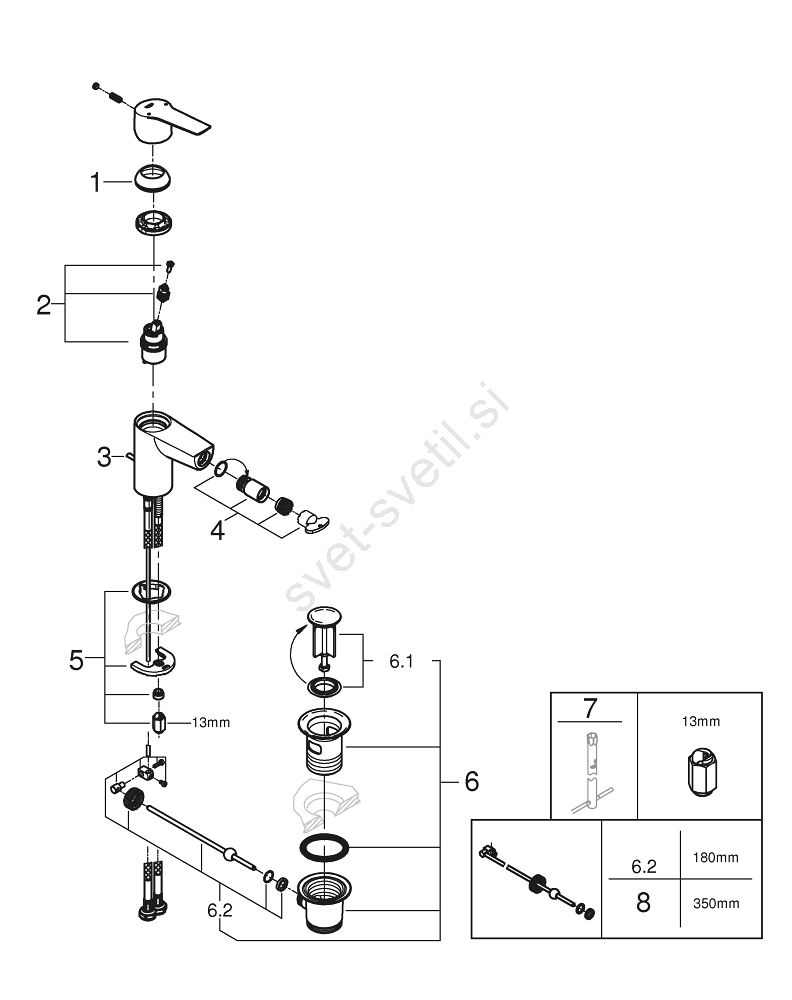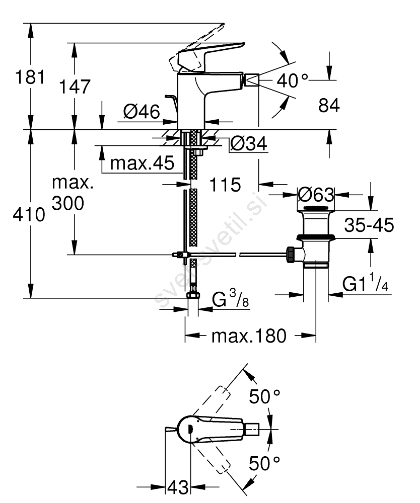 • Perlator GROHE Water Saving s pretokom 5,7 l/min za učinkovito rabo vode.