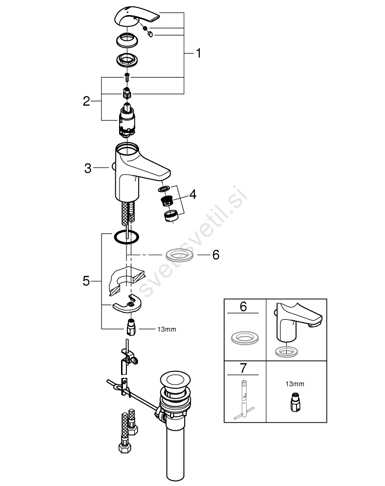 • Keramična kartuša GROHE Long-Life 28 mm za tekoče upravljanje pretoka vode.