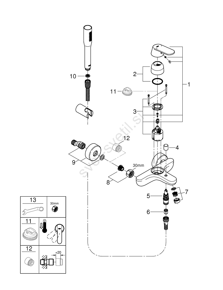 • Nastavljiv omejevalnik pretoka za varčevanje z vodo.