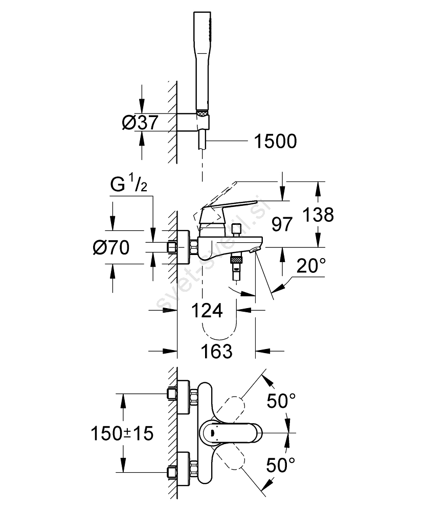 • Stenska enoročna kopalniška armatura za enostavno namestitev.