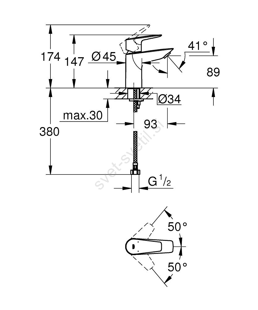 • Višina armature 147 mm in dolžina iztoka 93 mm za udobno uporabo.