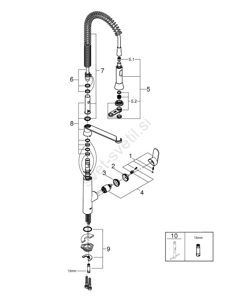 • Fleksibilna priključna cev za enostavno montažo in priklop na vodovodni sistem.