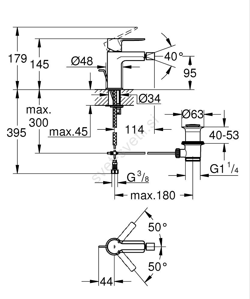 • Enoročna bide pipa GROHE Lineare z odtokovno garnituro – brezčasna eleganca in natančno delovanje.