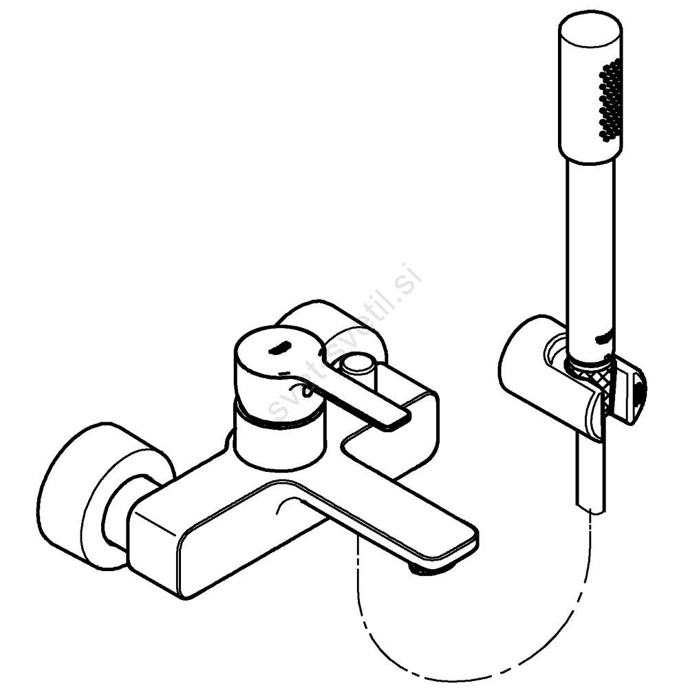 • V kompletu je tušni set, ki vključuje kovinski ročni tuš na tirnici, stensko držalo za tuš Tempesta Cosmopolitan 100 in tušno cev Silverflex 1500 mm.