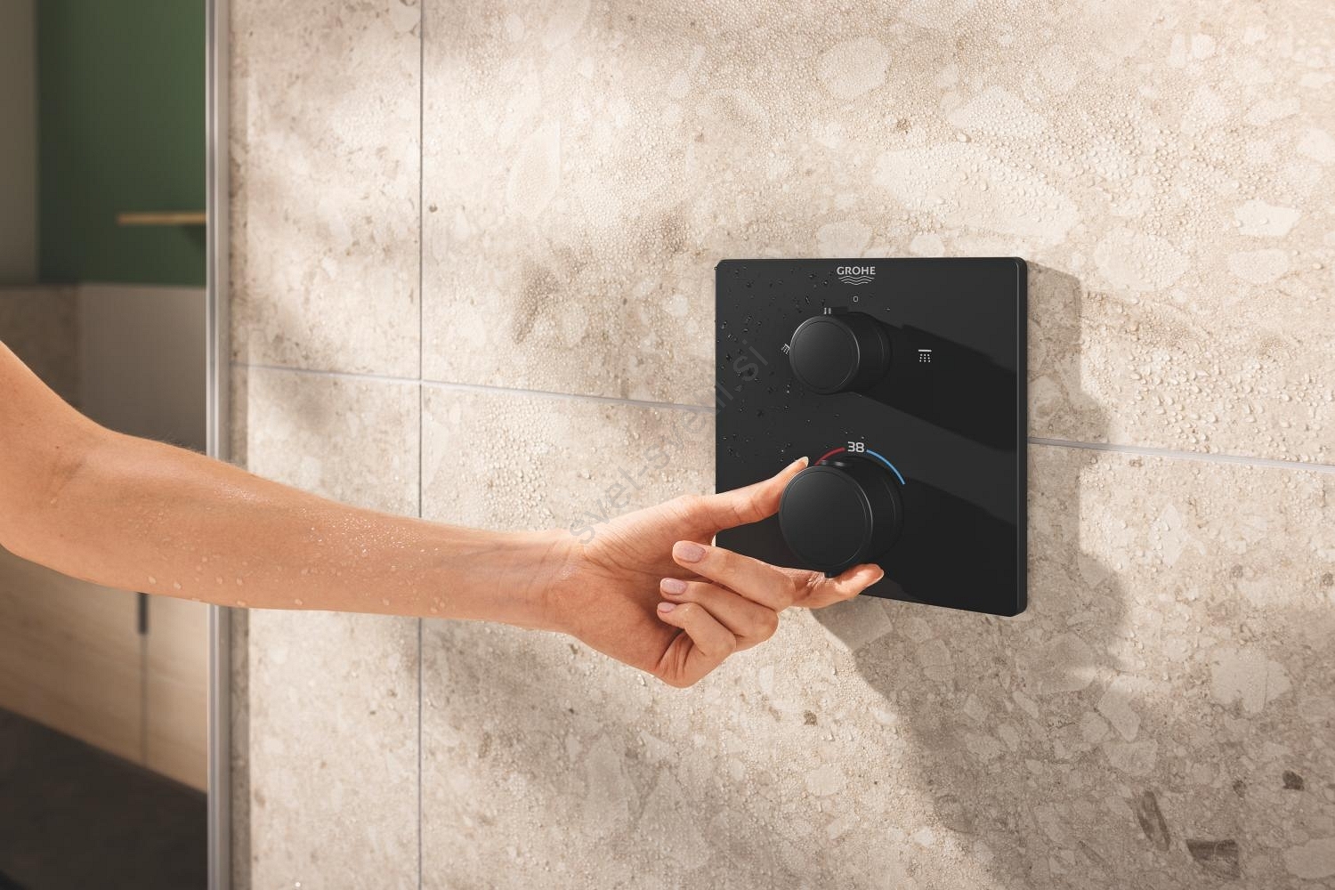 • Vgradni tuš sistem GROHE Precision v elegantni mat črni izvedbi.