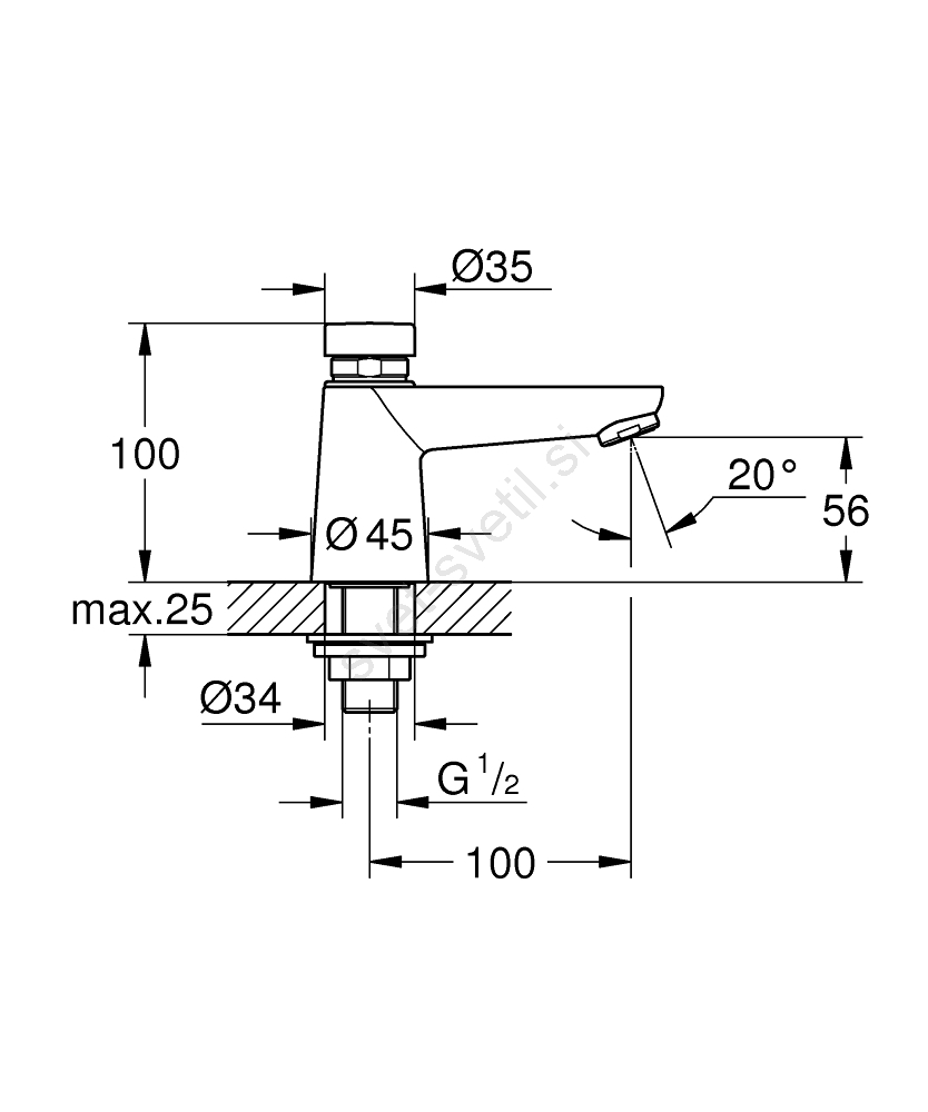 • Samozapiralni stojni ventil za hladno ali vnaprej pomešano vodo.