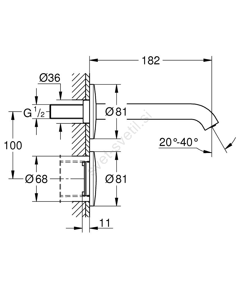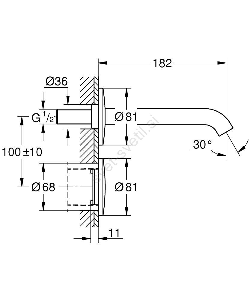 • Stenska montaža prihrani prostor na umivalniku in olajša čiščenje.