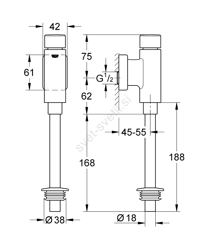 • Splakovalnik za pisoar s priključkom 1/2" za enostavno namestitev.