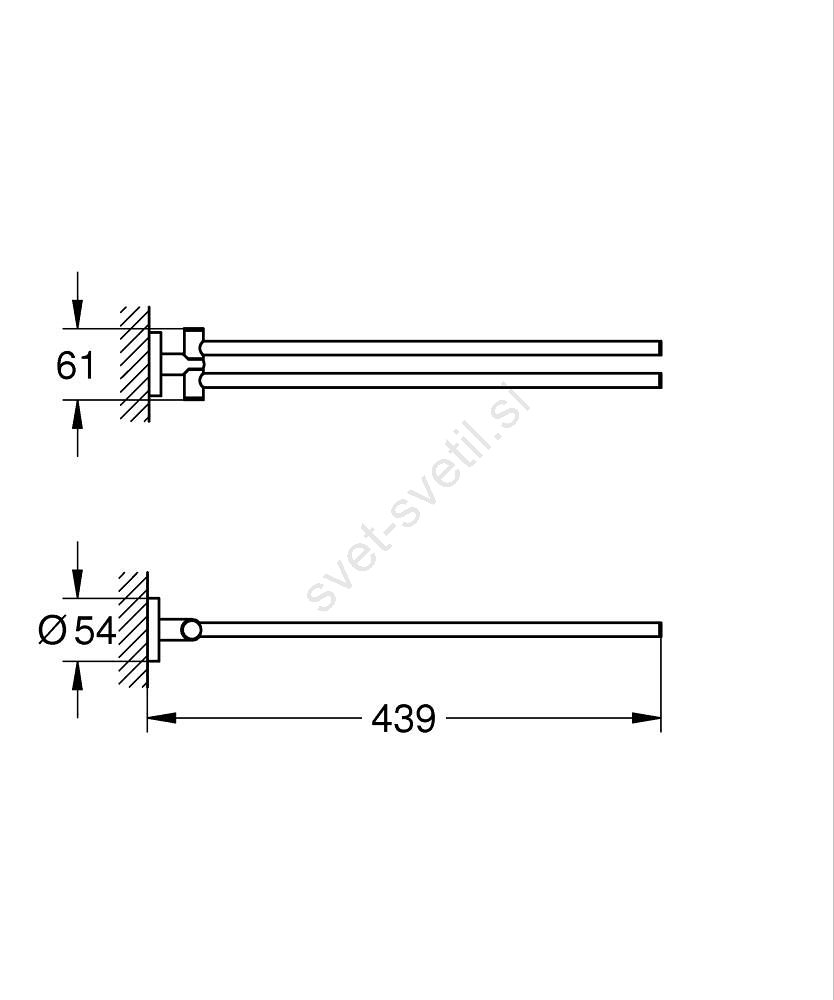 • Dolžina 439 mm nudi dovolj prostora za obešanje brisač.