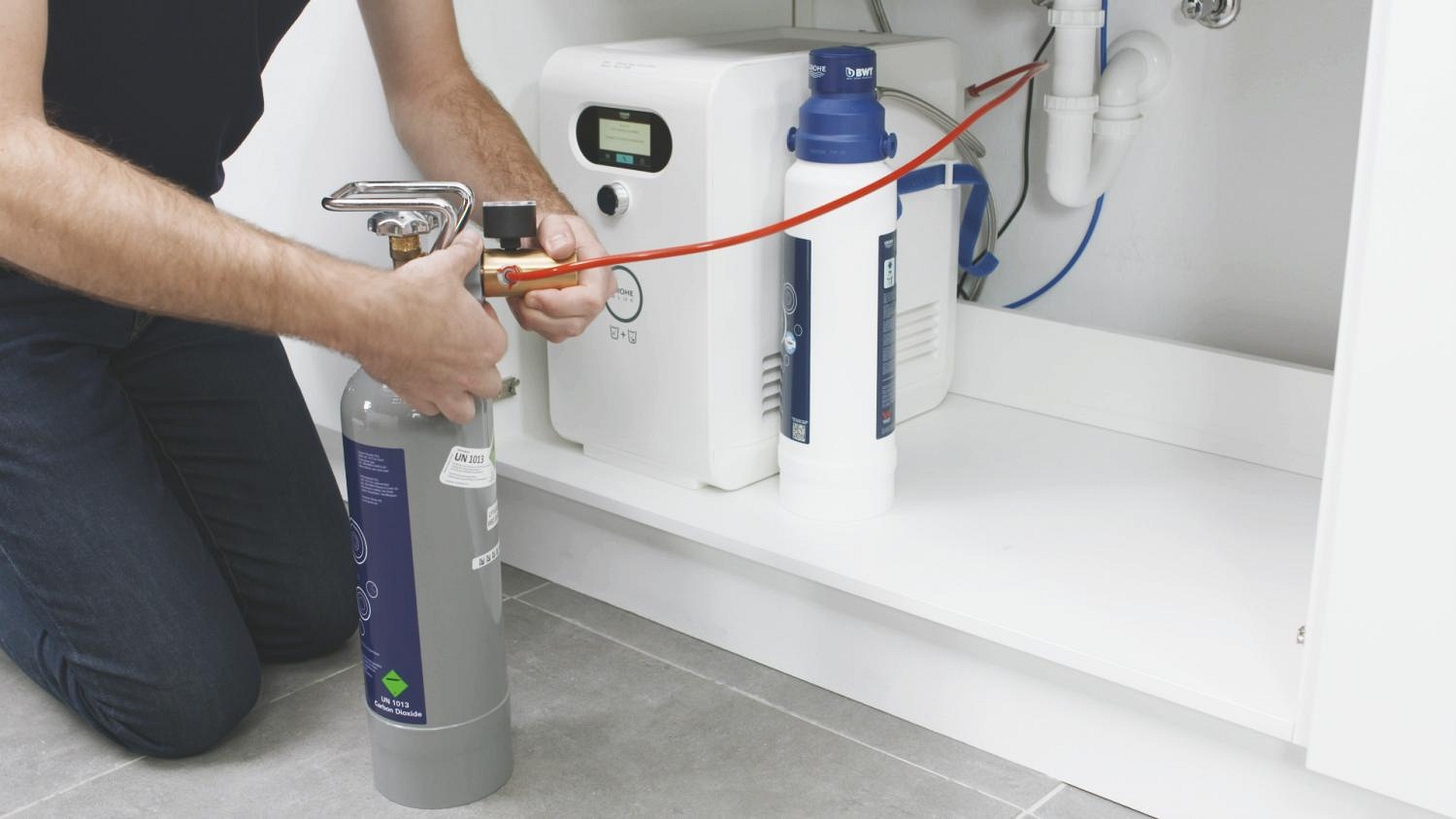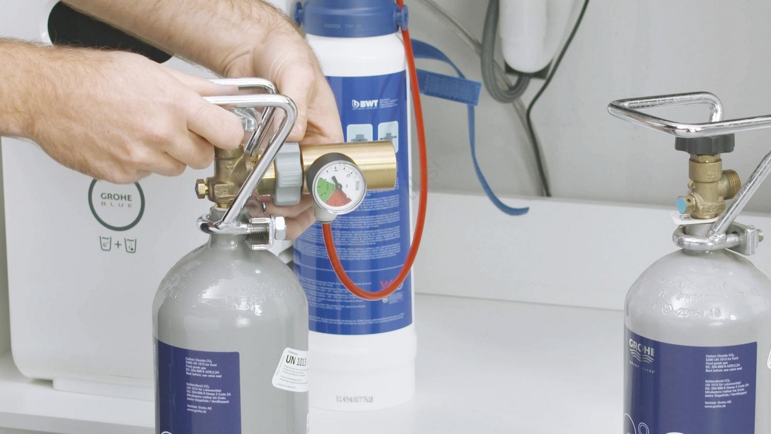 • Začetni komplet vsebuje 2kg jeklenko CO₂ za uporabo s systémom GROHE Blue Professional.
