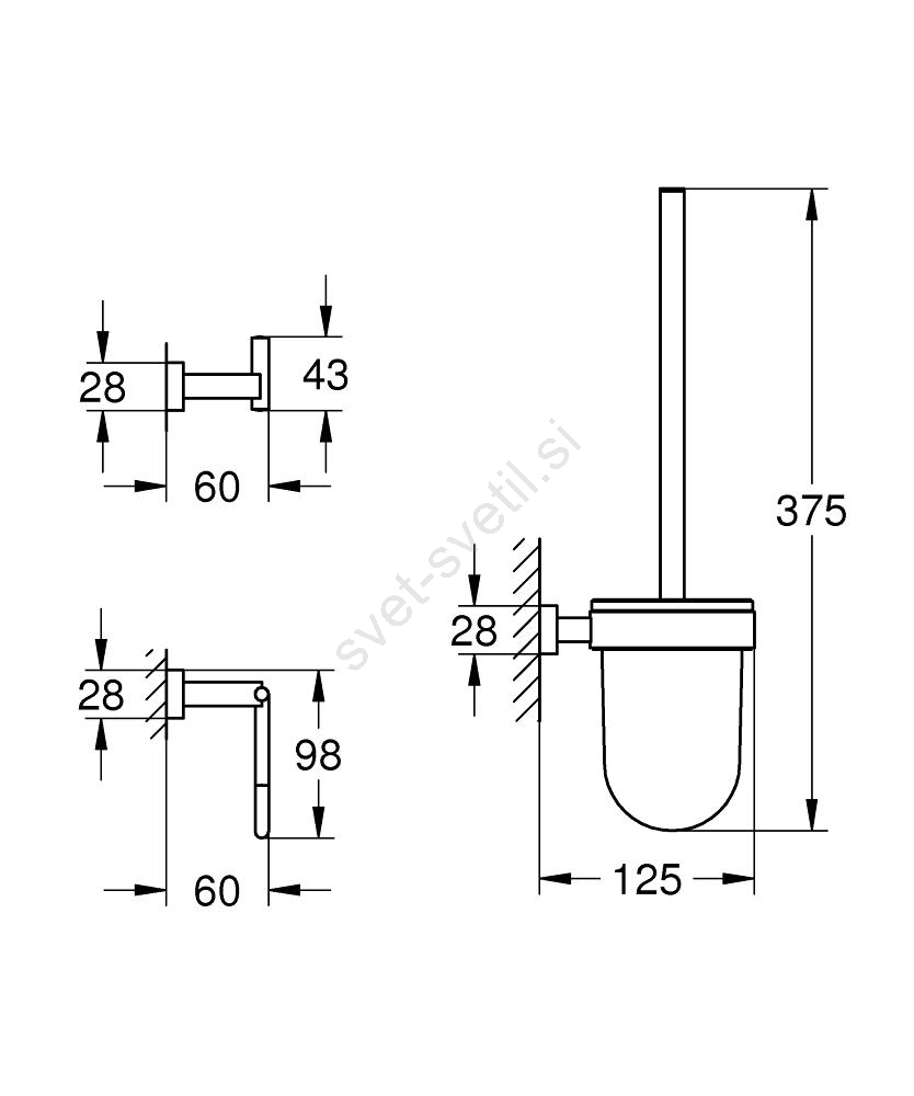 • Vsebuje kavelj za kopalni plašč, držalo za toaletni papir in WC ščetko.