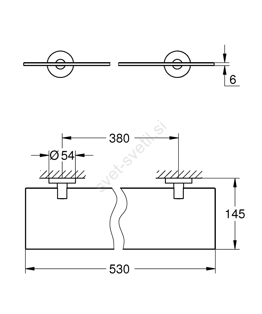 • Celotna dolžina 530 mm in uporabna dolžina 380 mm zagotavljata dovolj prostora za vaše kopalniške potrebščine.